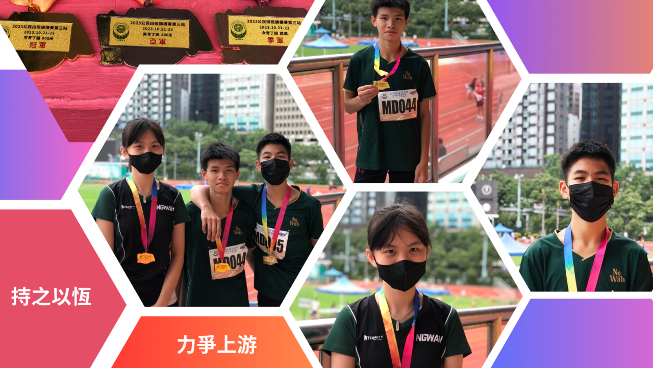 2023-10-21 本校田徑隊於 10月21日出席由公民體育會舉辦的「公民田徑錦標賽(第3站)」。 本校派出四位同學參與男子組青年丁組及女子組青年丁組賽事,參賽同學名單如下: 2B 鄭芷茵(跳高、跳遠)2C 黎廣裕(400米、800米)2D 李卓峰(400米、800米)2D 馬嘉怡(100米、跳遠)黎同學及李同學於男子青年丁組800米賽事中,分別獲得冠軍及亞軍。鄭同學出戰女子青年丁組跳高賽事獲得季軍。同學們努力爭取參賽經驗,視每次爭標機會為自我完善的過程,令全校引以為傲。