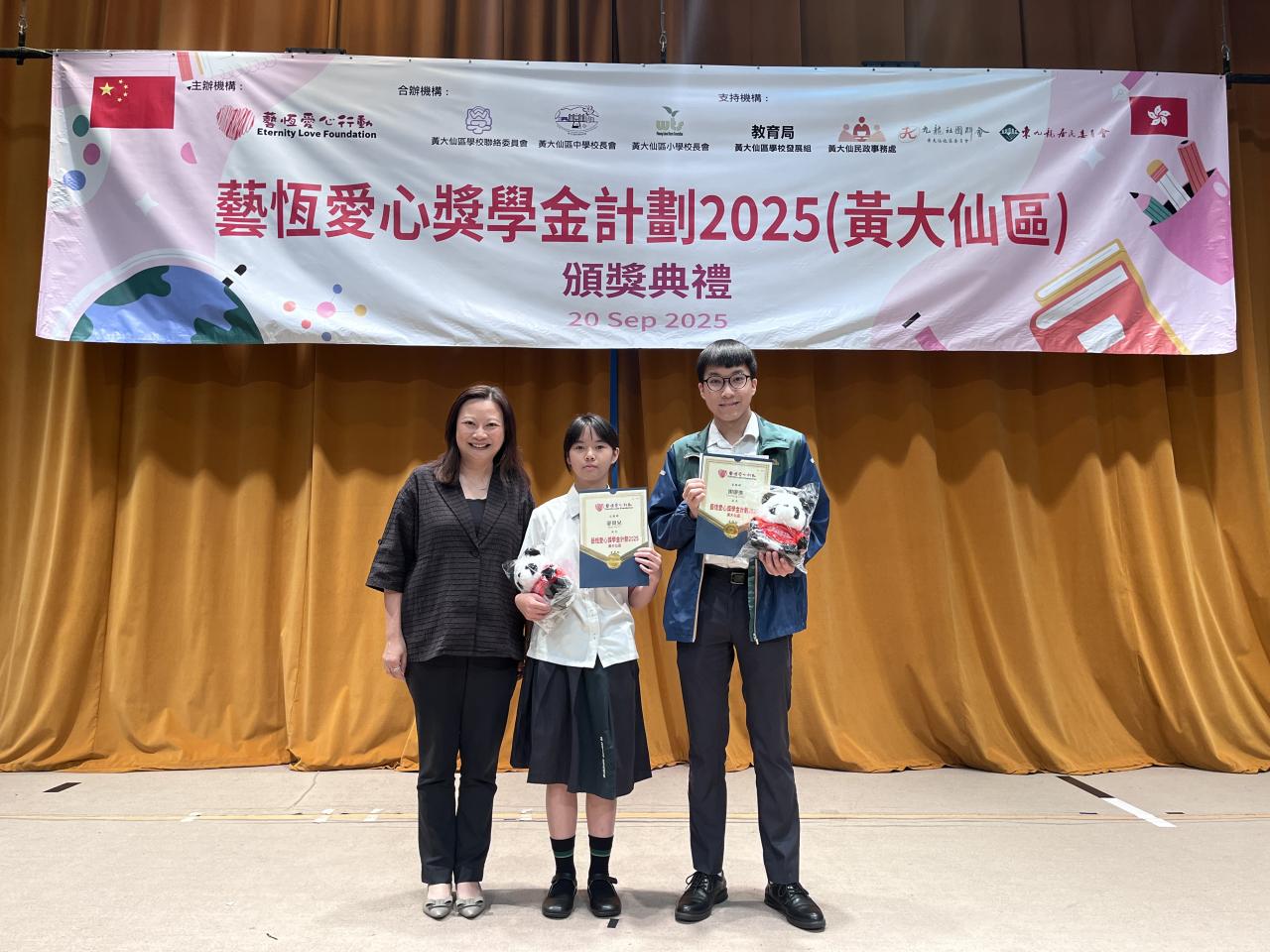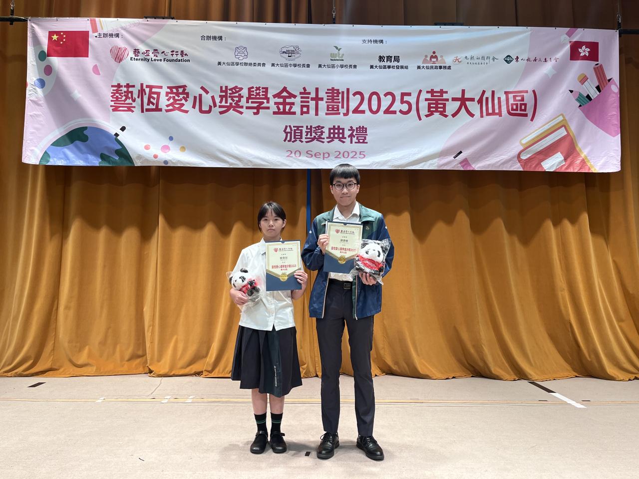 本校學生2A麥貝兒及6A 謝康進獲得由藝恆愛心行動頒發的獎學金。透過是項獎學金計劃,獎勵同學勤奮向上,在學業及活動方面獲得佳績。