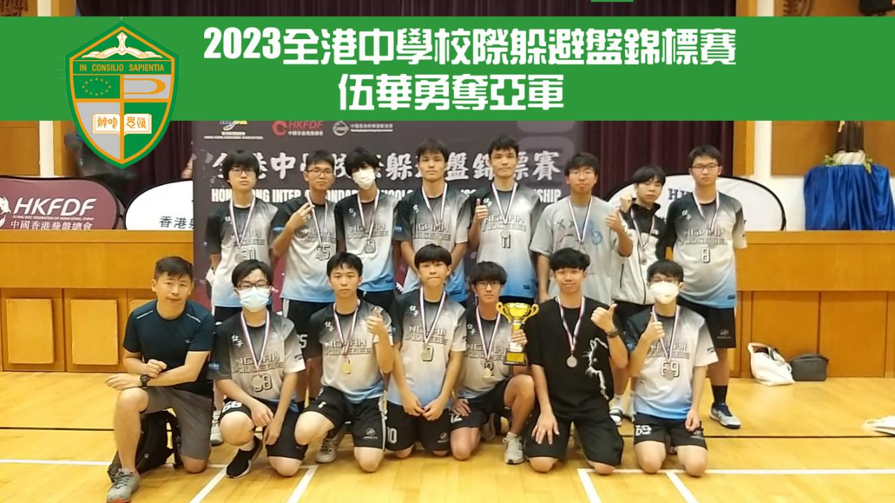 2023-07-07 躲避盤是香港新興運動,講求合作、敏捷、策略。本校於年中參加2023全港中學校際躲避盤錦標賽,憑堅毅鬥志,力戰上屆強隊,最終摘銀。隊長王晧廸稱,能擠身八強殊不容易,恰逢上屆冠軍強隊,賽情十分激烈,最終穩守突擊方能晉級。進入四強賽事,面對曾經於分組賽贏過我們的對手,我們還是咬緊牙關於第三局打出佳績。雖然未能奪冠,但我爲我們伍華隊那不屈不撓的體育精神而感到驕傲。伍華躲避盤校隊:隊長:王晧迪隊員:關君霖林英康岑子軒張育為周文連鄭振毅郭柏賢鄧栢豪岑子浚王驄涵張展灝