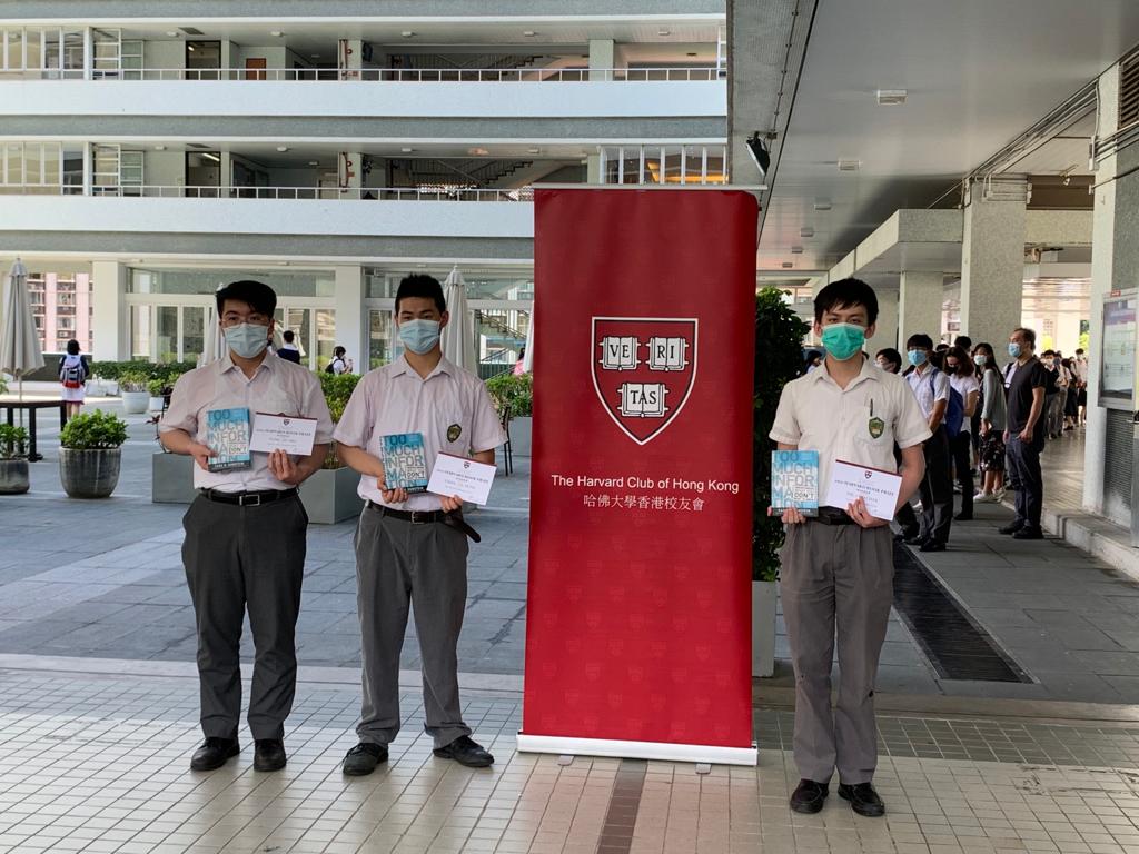 THREE outstanding students, Tse Cho Chak (S5A), Chan Yiu Hung (S5B) and Tung Siu Hei (S5B) were awarded “The Harvard Book Prize 2021”, sponsored by The Harvard Club of Hong Kong. The award is given to students who "combine excellence in scholarship and high character, with achievement in other fields.” The award was launched in 1910. This year, the ceremony was held at La Salle College. More than 540 students from 180 secondary schools in Hong Kong participated in the ceremony. Teachers and parents also joined the ceremony to celebrate the excellent work of all the participants.