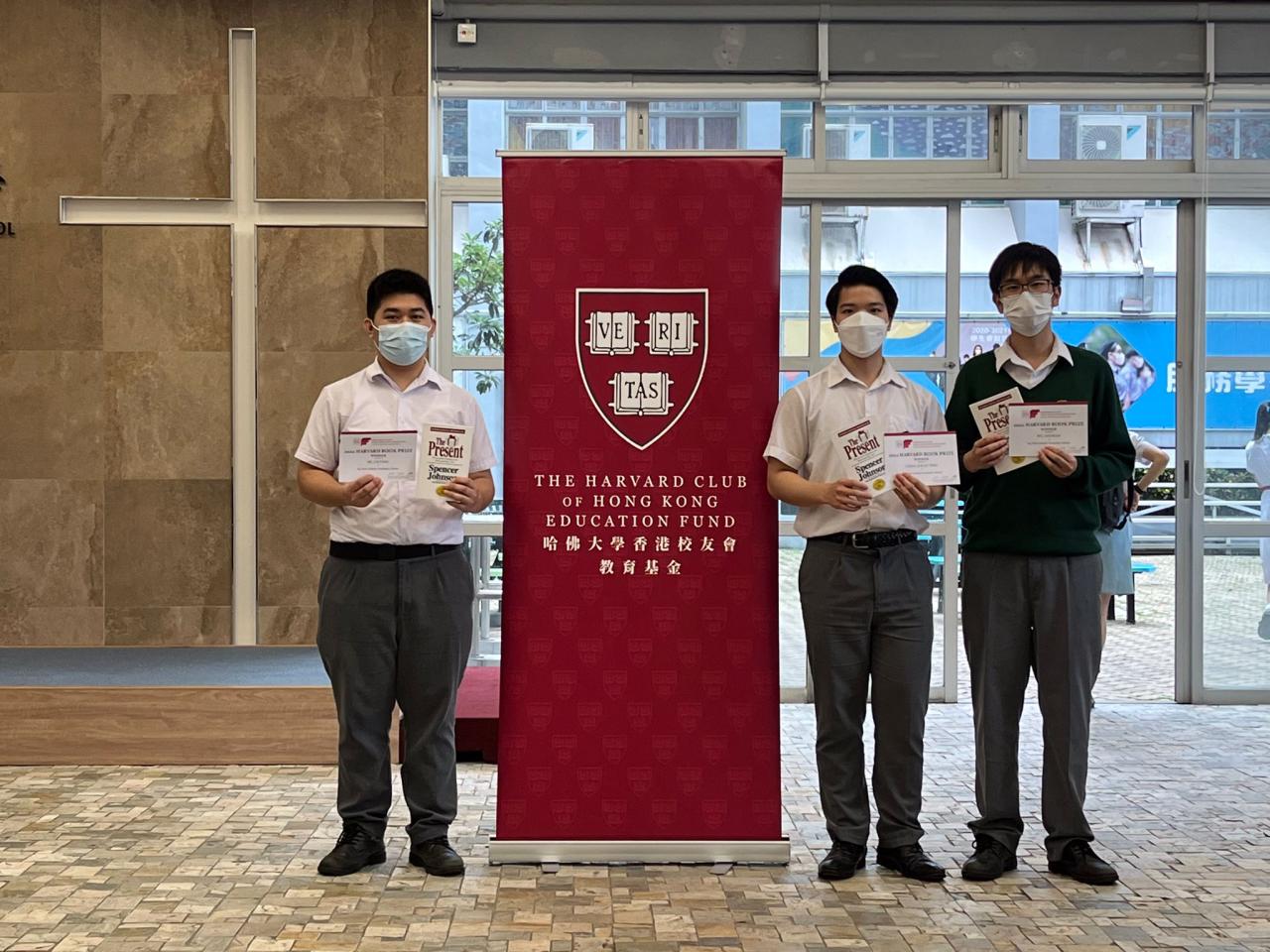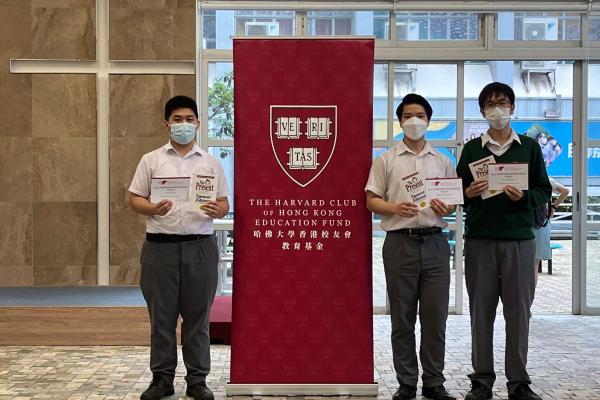 THREE outstanding students, Chan Kwan Ting (S5A), Wu HaoRan (S5A) and He LiuYing (S5B) were awarded “The Harvard Book Prize 2021”, sponsored by The Harvard Club of Hong Kong. The award is given to students who "combine excellence in scholarship and high character, with achievement in other fields.” The award was launched in 1910. This year, more than 750 students from 250 secondary schools in Hong Kong participated in the ceremony. Teachers and parents also joined the ceremony to celebrate the excellent work of all the participants.