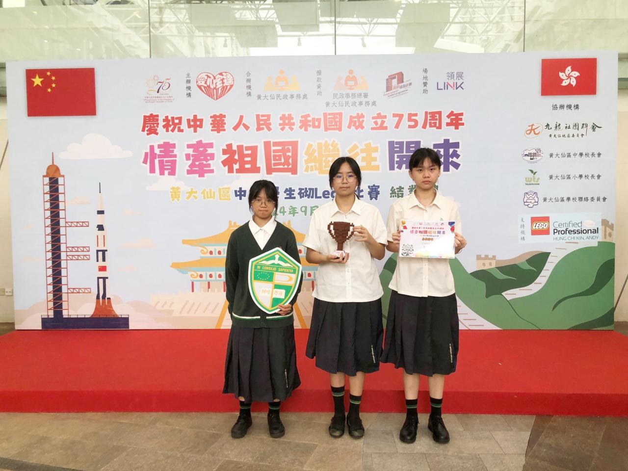 本校3B班鄭晞彤、鄭芷茵、林詩怡及馬嘉怡同學近日參加了由愛心全達慈善基金主辦、黃大仙民政事務處合辦的「情牽祖國 繼往開來」LEGO大賽, 以作品《中華文明的時空之旅》奪得中學組季軍,為校爭光。 是次比賽吸引了區內14支中學隊、21支小學隊,共超過300名學生參與。參賽者需使用4000塊樂高積木,以中國古代文明、建國歷史及近代國家發展為主題創作模型, 旨在加深學生對國家歷史和發展的認識,培養國民身份認同。 我校得獎作品《中華文明的時空之旅》巧妙融合了中國傳統建築與未來科技元素。作品以典型的斗拱結構和飛簷翹角為基礎,中央擺放守護大門的石獅子,周圍環繞長城元素, 並巧妙點綴多個小型機器人。整體設計不僅展現了中華文明從遠古到未來的發展歷程,更體現了同學們對國家悠久歷史的自豪感和對未來發展的期盼。 通過參與是次比賽,同學們深入了解中華文化精髓,增強了對國家的認同感和歸屬感。 參賽作品已於國慶假期在樂富廣場A區展出,並將於十月中移師至黃大仙廣場繼續展覽。