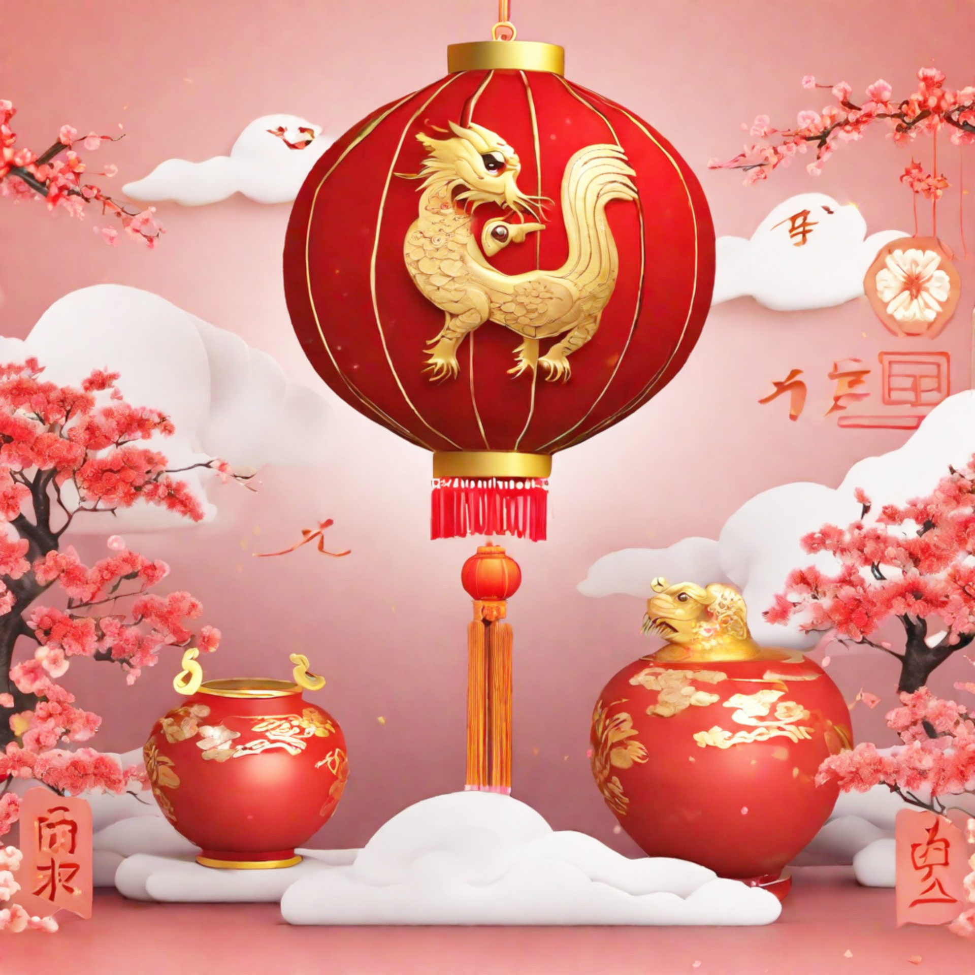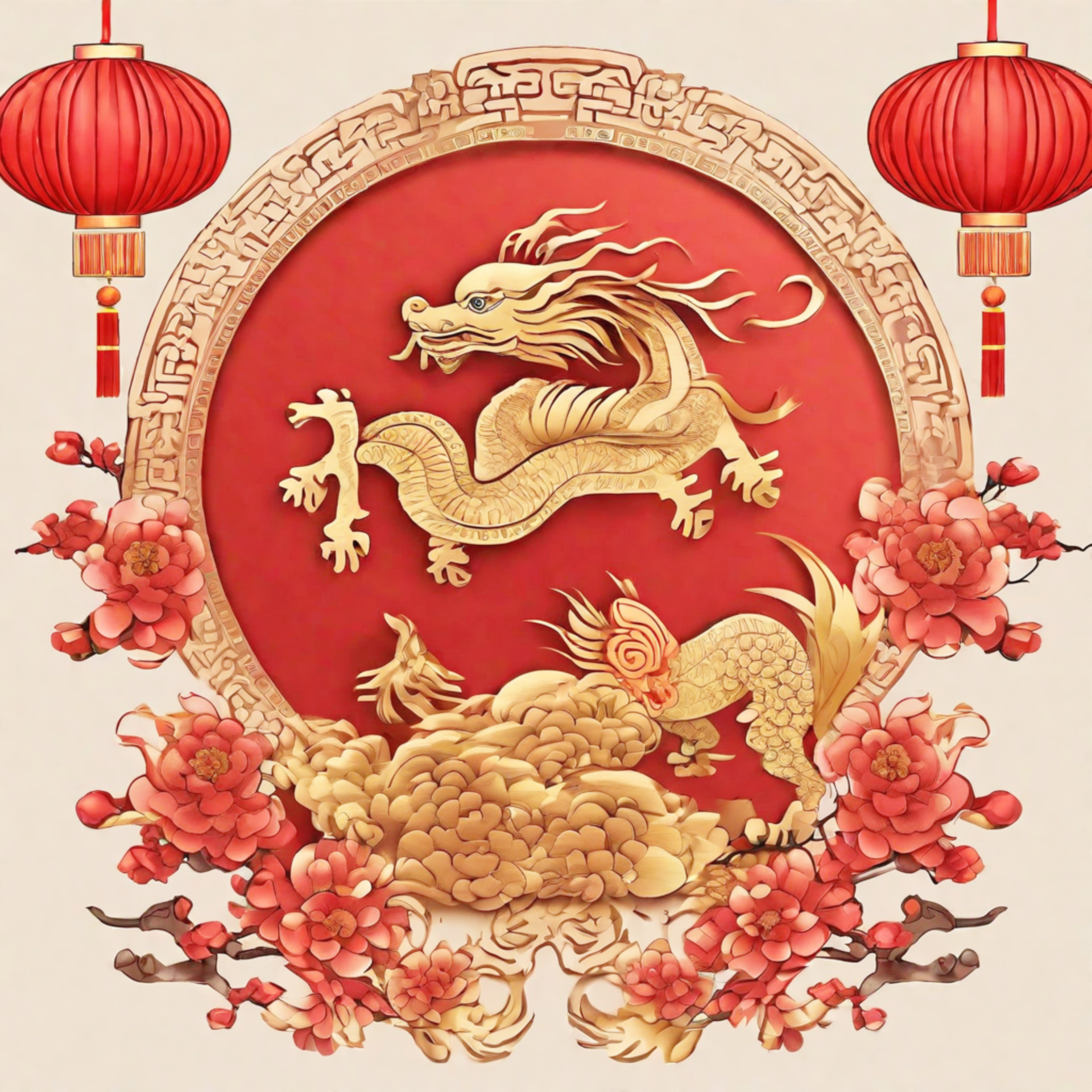 我選擇了中國傳統的節日新年作為主題,製作的時候我透過紅色和金色的顏色來象徵幸福和繁榮。圖片的背景是一條龍,因為2 0 2 4年是龍年,也代表龍行虎步,意思是形容人或事物行动威武有力,步伐沉稳有力,具有强大的气势和力量。也用来形容人才出众,能力非凡,具备卓越的能耐和统御力。在龍的周邊有一些花,來形容人温文爾雅丶有修養的人。