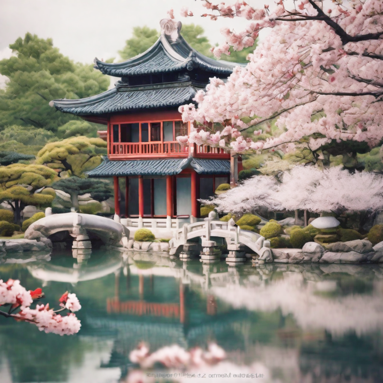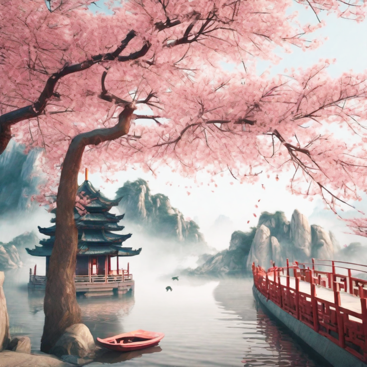 我選擇了中國傳統節日春節作為主題,透過紅色和金色的主要色彩來象徵幸福和繁榮。背景環境則以中國古代庭院為基礎,展示中國傳統建築的特色。我設立咗有三丈嘅中國傳統節日嘅相片。這個相片係中國河流美景,旁邊有又大又漂亮的粉紅色樹。
